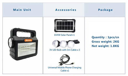 Portable Outdoor Solar Kit with DC LED Bulbs, Radio, Solar Kit for Home Lighting