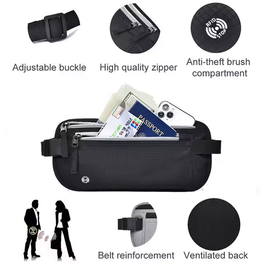 Travel Bag with RFID protection safely holds Credit Cards, Passports, IDs